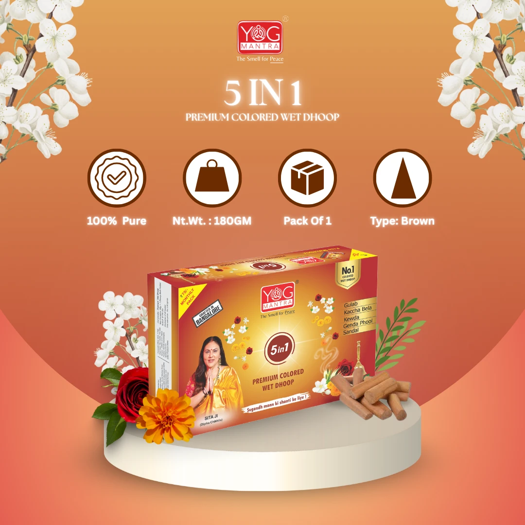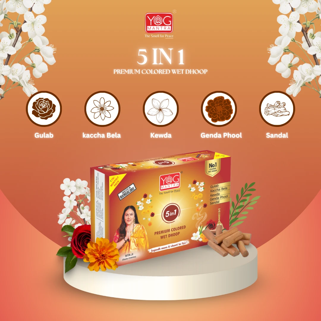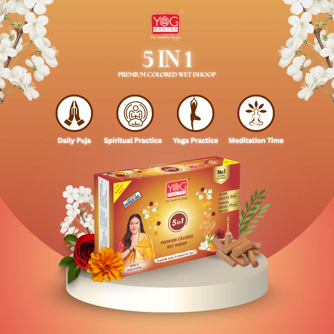 Yog Mantra 5 in 1 Premium Colored Wet Dhoops – (pack of 1)