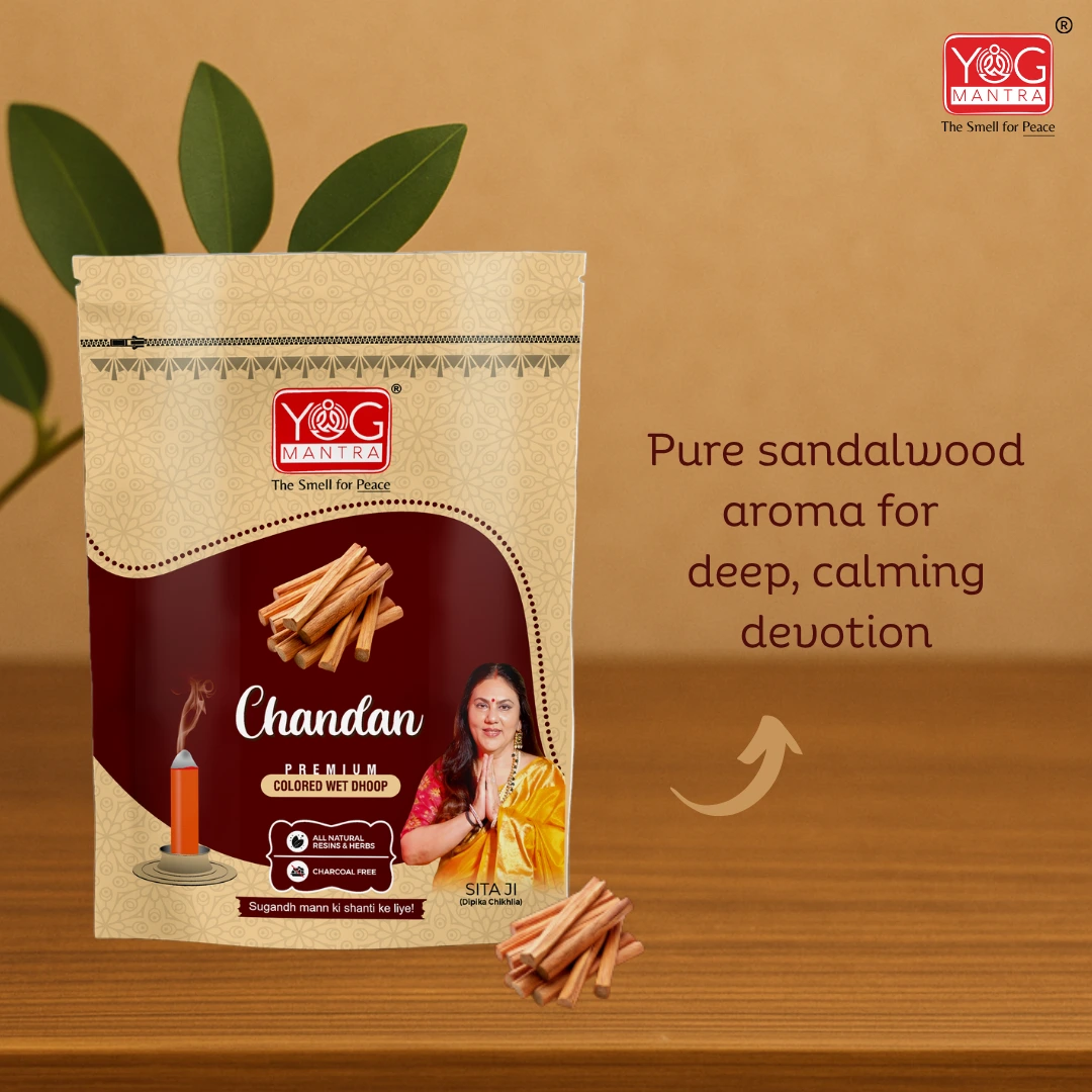 Crafted to convey the ageless, heavenly scent of sandalwood into your environment, our Yog Mantra Chandan Premium Colorful Wet Dhoop. This Premium charcoal-free dhoop emits the soothing and exquisite aroma of holy Chandan, therefore enhancing your pooja rituals and meditation experience. Housed in a sophisticated Zipper pack, these wet dhoops are simple to use whenever required and maintain moisture, so they stay fresh and fragrant.
