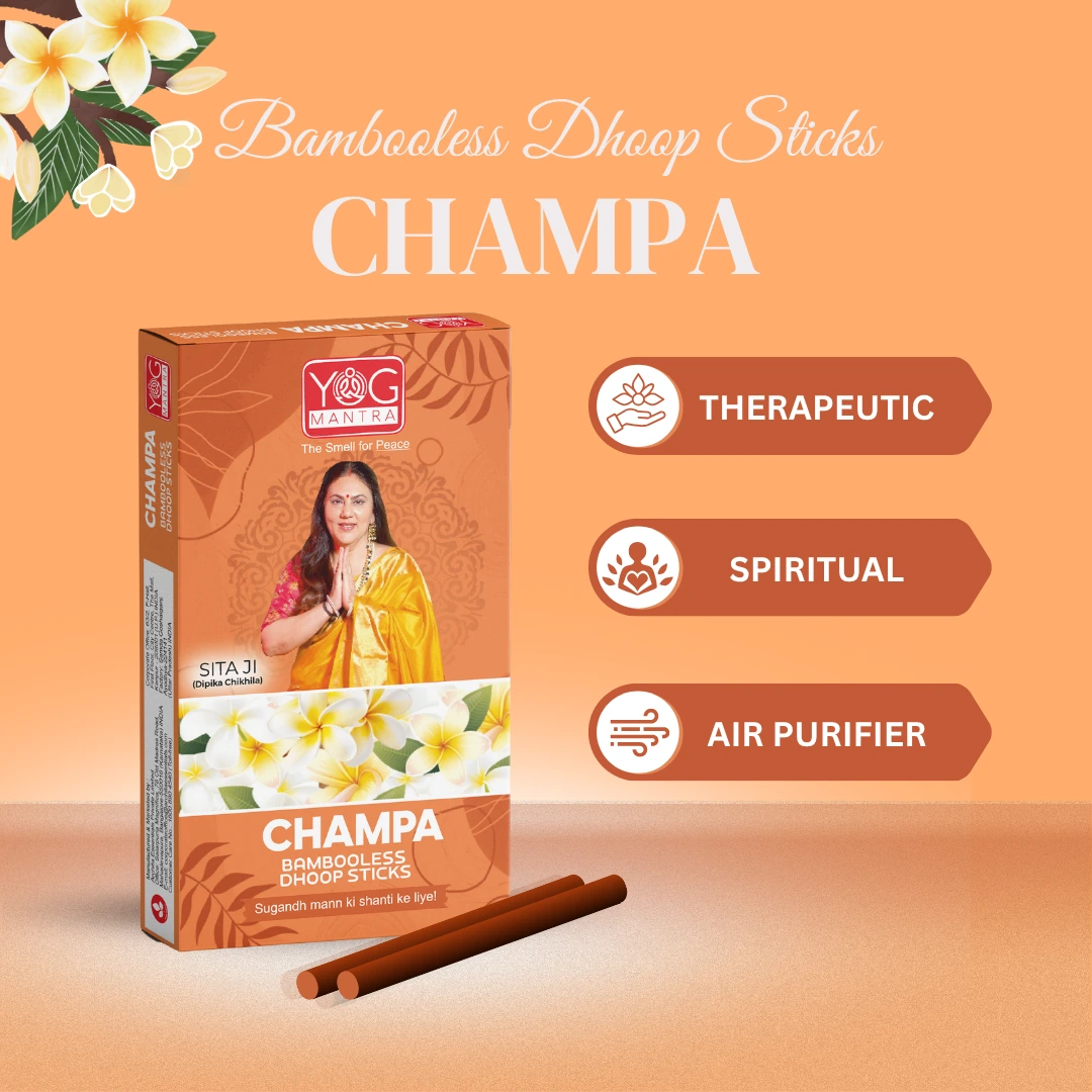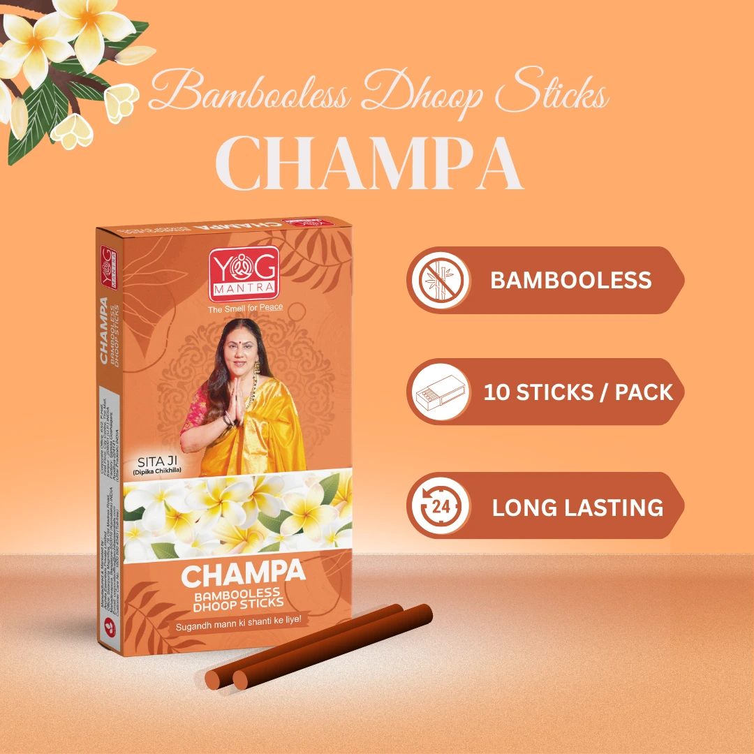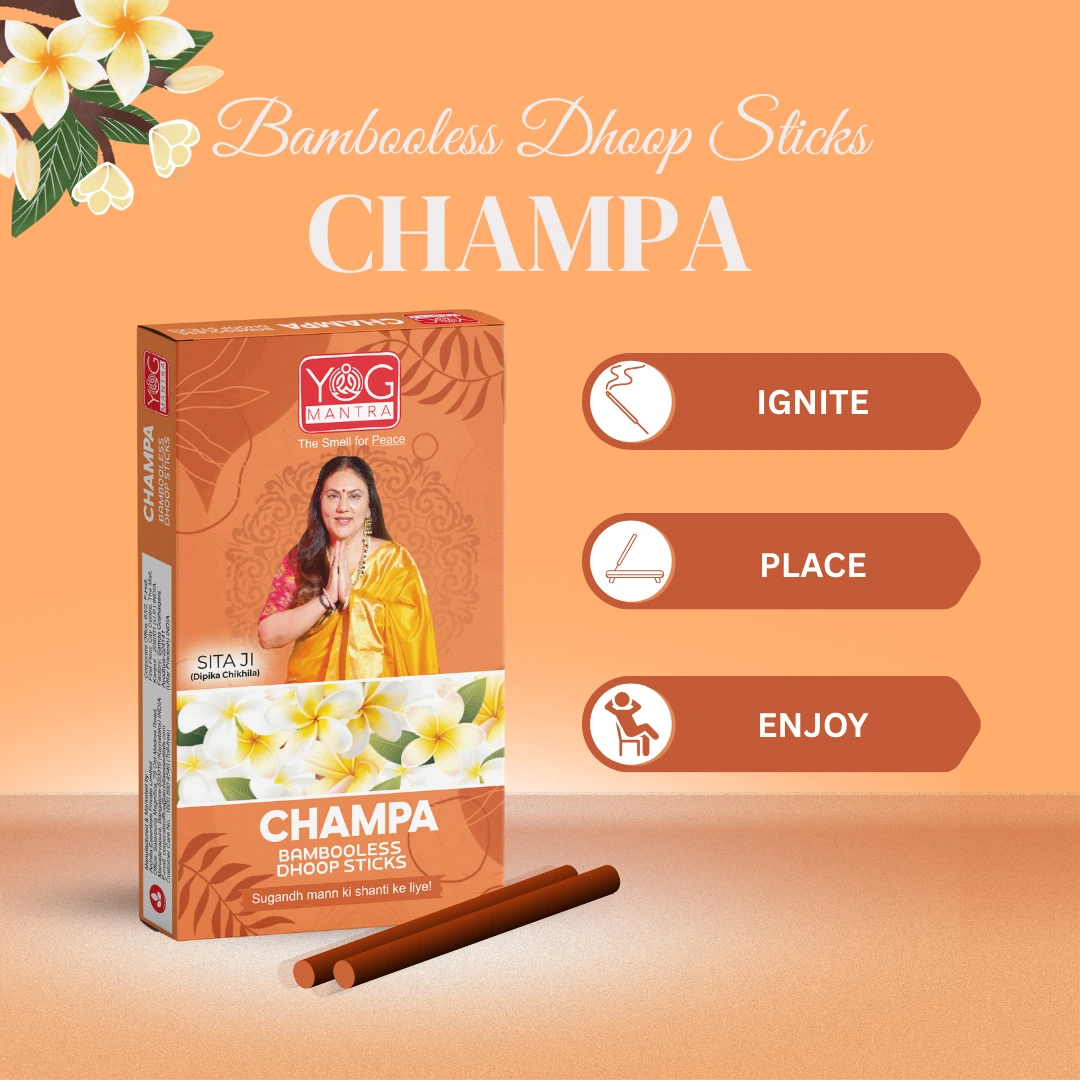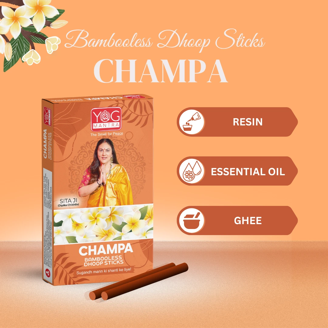YogMantra’s Champa Dhoop Stick Elevates your spiritual journey, its a fragrant companion to your moments of tranquillity. Crafted with care, these incense sticks are perfect for those seeking a serene ambiance during meditation or yoga sessions. Embrace the tranquillity with 100% natural ingredients, connecting you to the purity of nature.