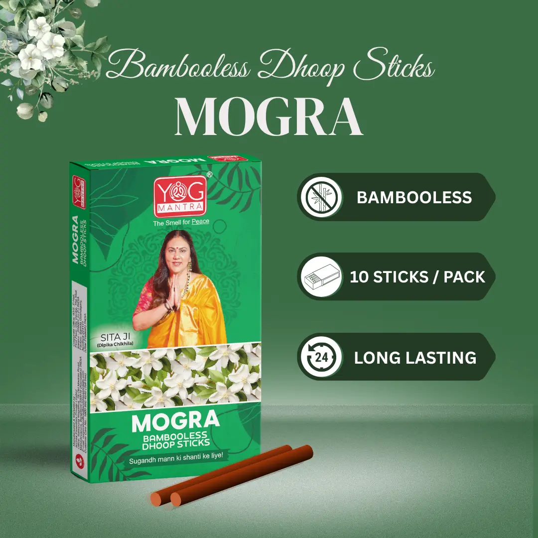 YogMantra invites you to embark on a sensory journey with our exquisite Mogra Dhoop Stick. The sweet and floral notes of mogra have been known for their calming effects, helping to reduce stress and anxiety. Our Mogra Dhoop Stick is crafted without charcoal, ensuring a clean and pure burn. YogMantra’s Mogra Dhoop Stick is crafted with 100% natural ingredients, ensuring a pure and authentic experience.